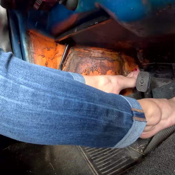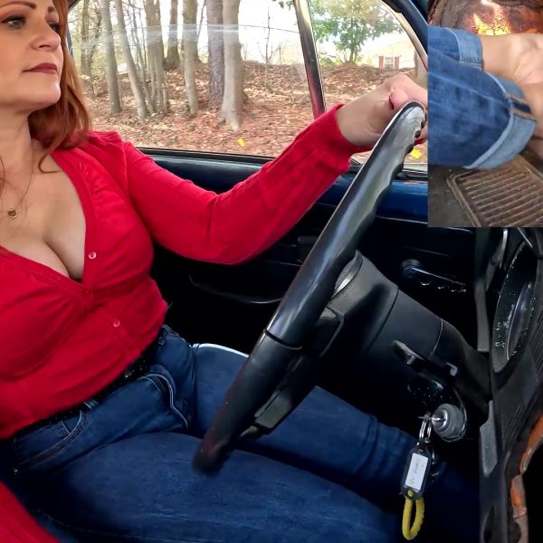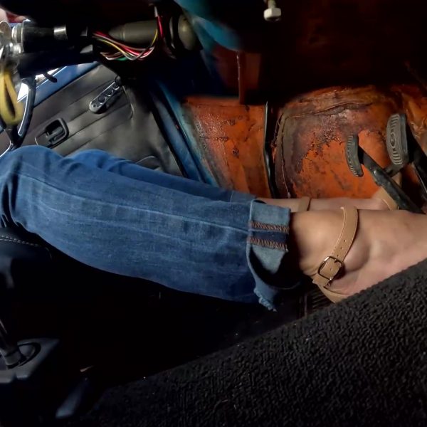 A neat view of Jane getting the old Bug running. Filmed over her left shoulder,…