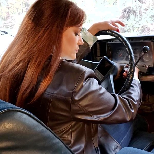 She climbs into the old Caddy, fires it up and pulls it up by the…