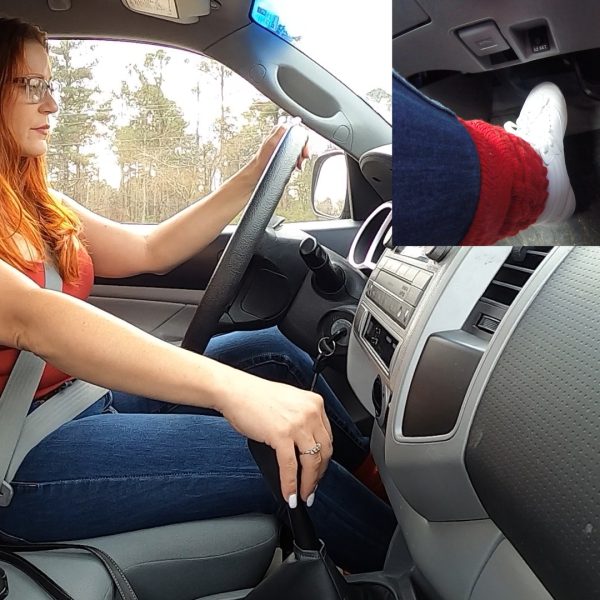 She hops into the Monte Carlo wearing her flannel shit, black shorts and white house…