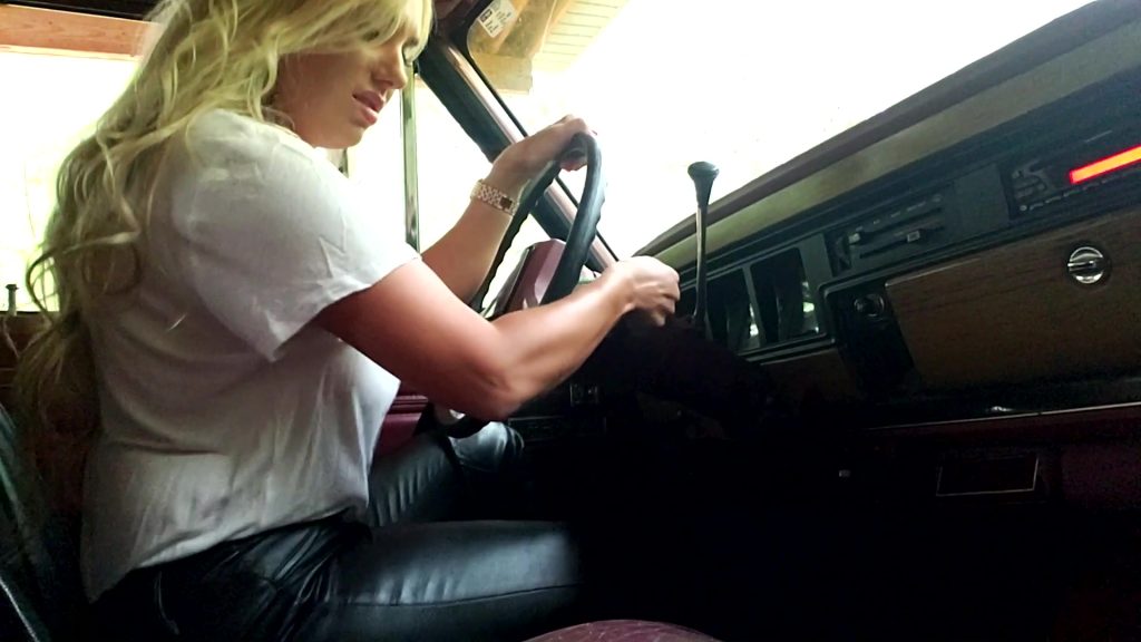 1476 (Alt) – Vivian Ireene Pierce Leather Riding Babe Mounts the Caddy