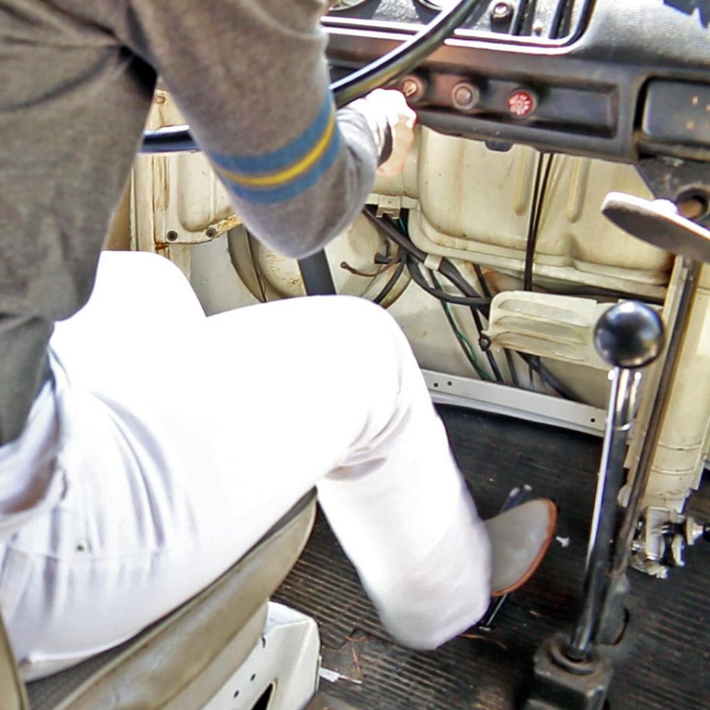 The old ’71 Westy is being testy and it’s really getting on Hana’s nerves. She keeps cranking it over and hitting that gas pedal hard with her vintage gray leather boots under her tight, white jeans.