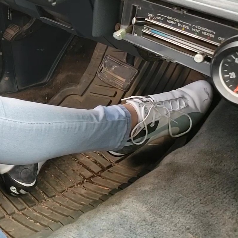 She’s already stalled in the road when the video starts. Her car is acting up pretty badly. It’s probably running hot and flooding out very easily. She gets the car to start and punches it to get going again but at the next stop sign, as she’s slowing down, the engine stalls and she’s broke down at the stop sign. This fucking car…