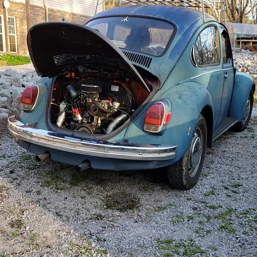 Jane had success in the last clip finally getting the old Bug to start and is trying to smooth things out with some warm-up revving. It still sounds off, so there might be an issue with it. Jane revs it for a while before swapping with Vivian.