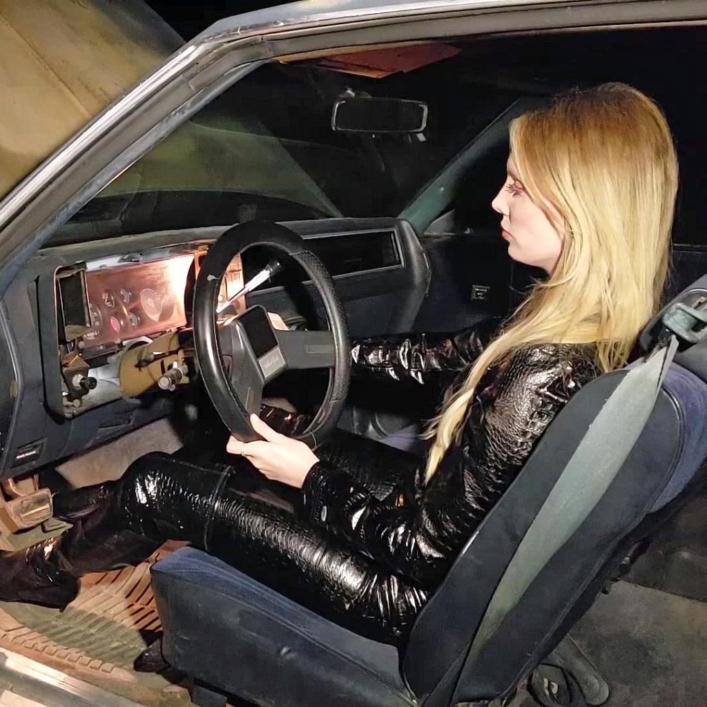 Jane Starts & Drives the Volvo in Black Boots with Vivian Riding Along