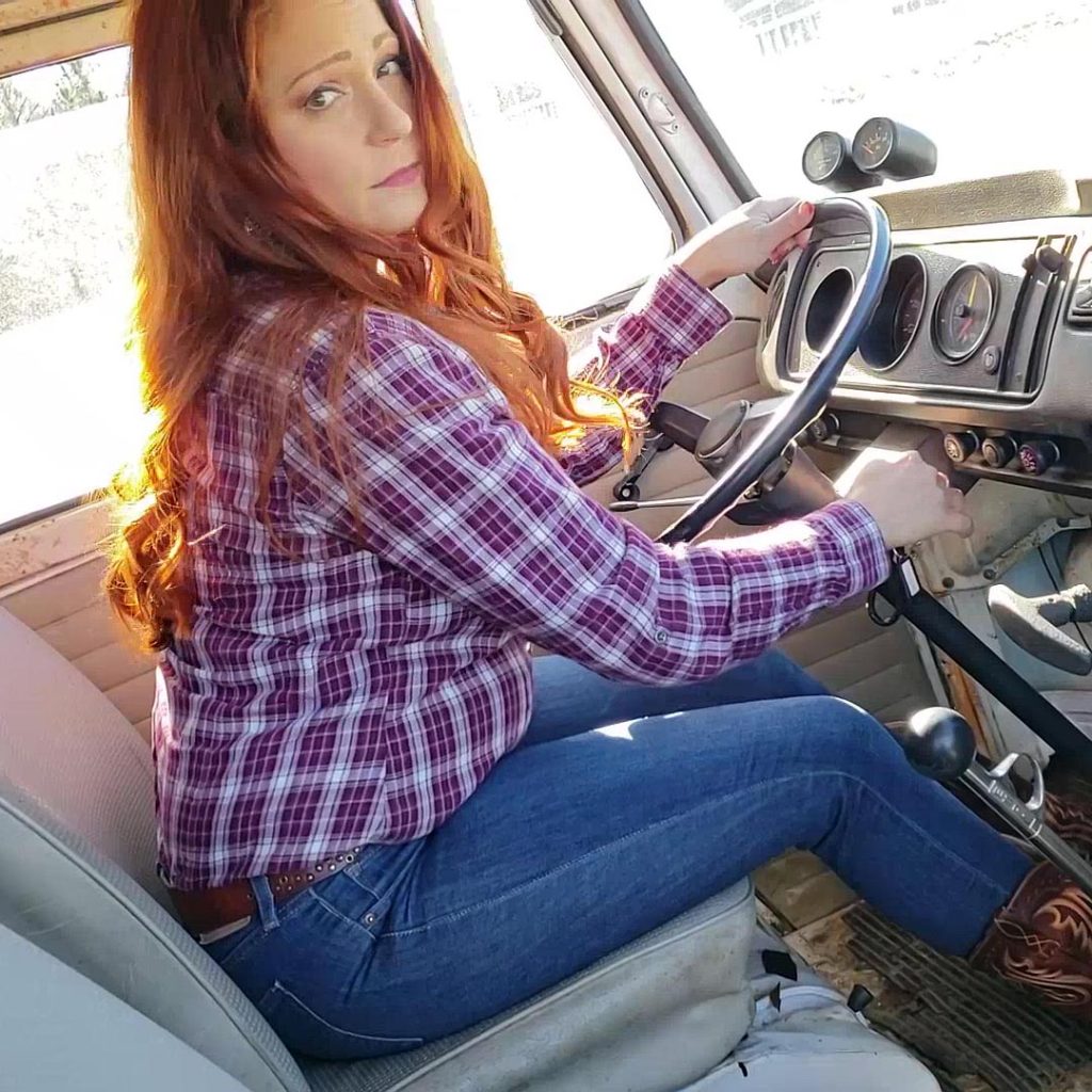 Scarlet Driving the Jeep in Brown Frye OTK Boots POV