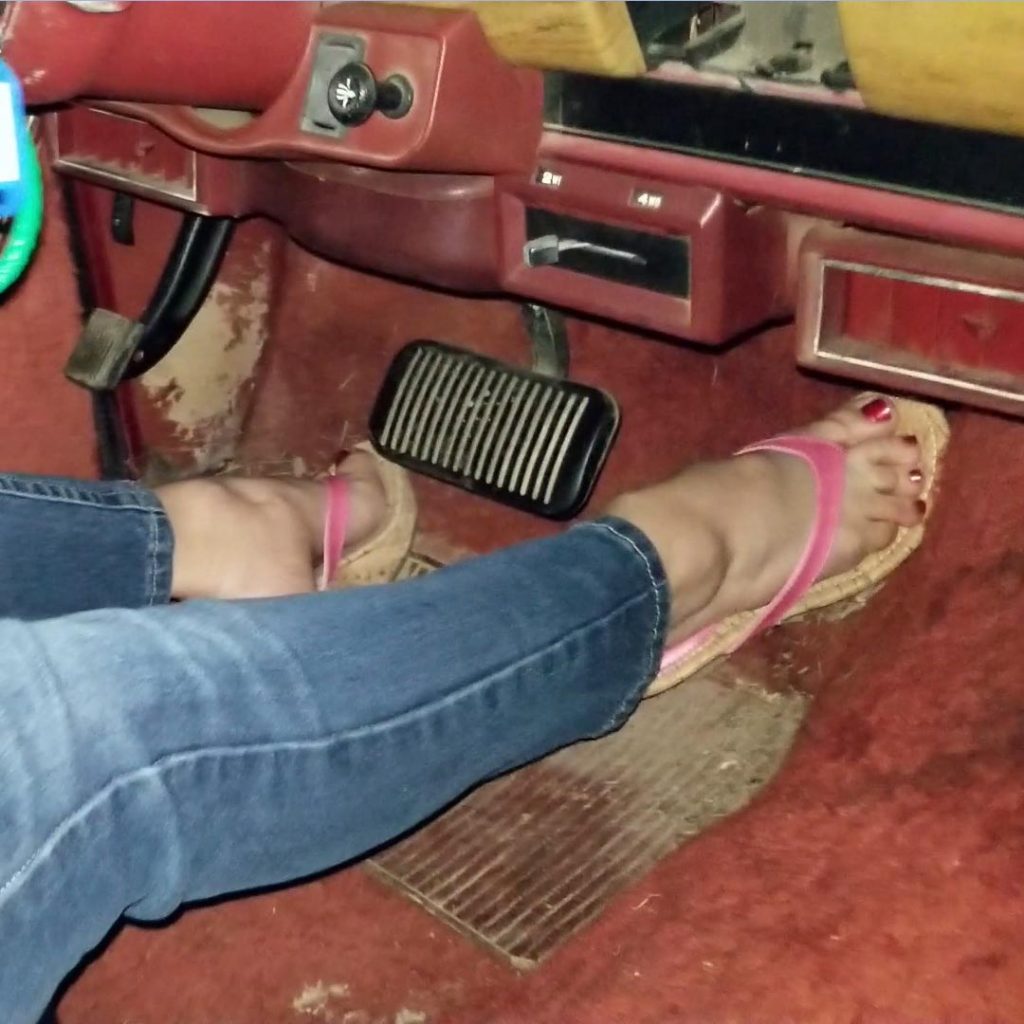 I’m assuming Shish gets in as she’s about to get on the road he’s shooting a mixture of upper and some great closeups of Vivian’s sexy size 6 feet in her pink cork wedge sandals as she works the gas and break pedals. Vivian also shoots some really great video of her feet and some video of her face as she walked out to the jeep to get in and start it up, when she gets out on the road she opens it up flooring the gas pedal trying to go as fast as she can when traffic permits witch isn’t very often.