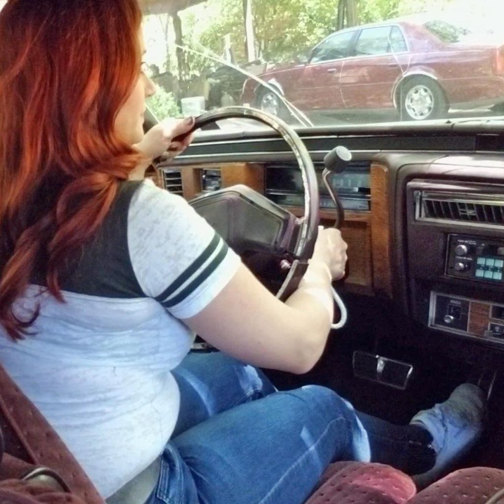 The camera switches between Shish’s camera and Jane’s smartphone showing the same video at different times in the video. Jane & Vivian turns to Shish’s camera at different times with there big smiles on thee faces having a good time playing in the Cadillac cranking the big block V8. It’s almost ten minutes the engine seems to want to start and run that has to be a first. Jane reaches over with her right foot over Vivian’s again and revs the engine some.