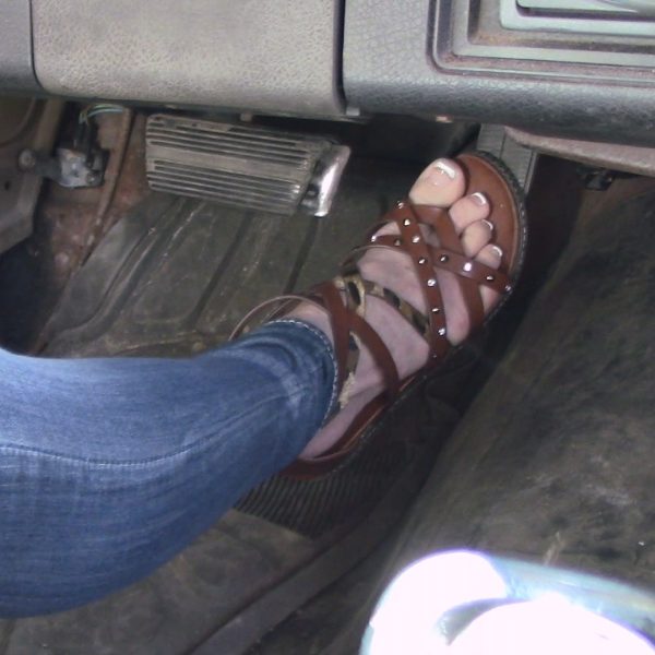 Elizabeth Taking the Z28 for a Cruise in Brown Strappy Flat Sandals