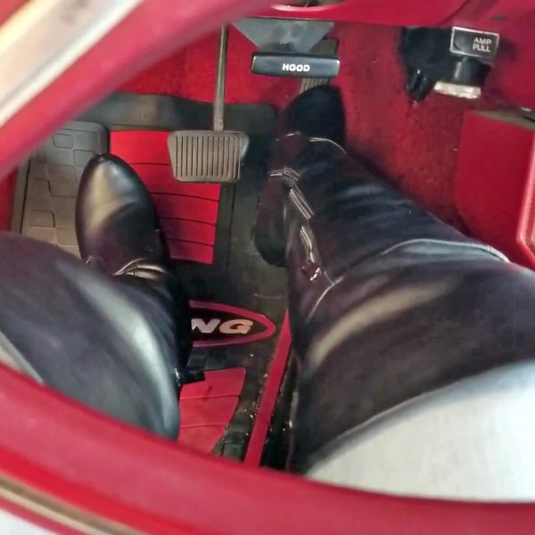 Scarlet Cranking the Renault in Black Leather Boots