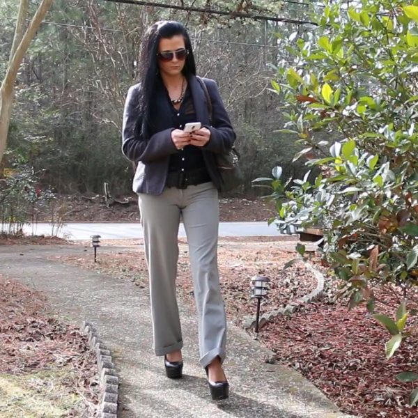 She tries getting the old bus started in two different pairs of shoes. The first is a platform wedge sandal… Read more