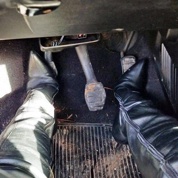 Jane Domino Floods, Starts & Revs Caddy in Tan OTK Boots POV