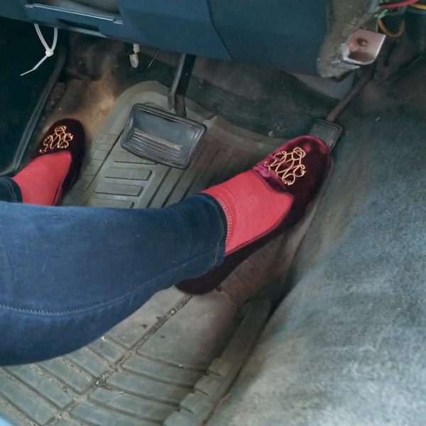 Jane Domino Flooring the Gas in Red Slippers & Socks & Gets Stuck Parking