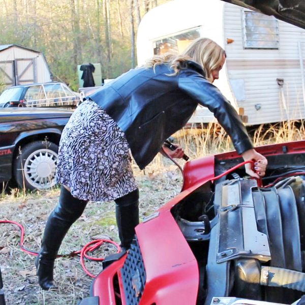 She gives this old Ford a good pedal workout trying to get it started but it the battery says, "Deuces!"… Read more
