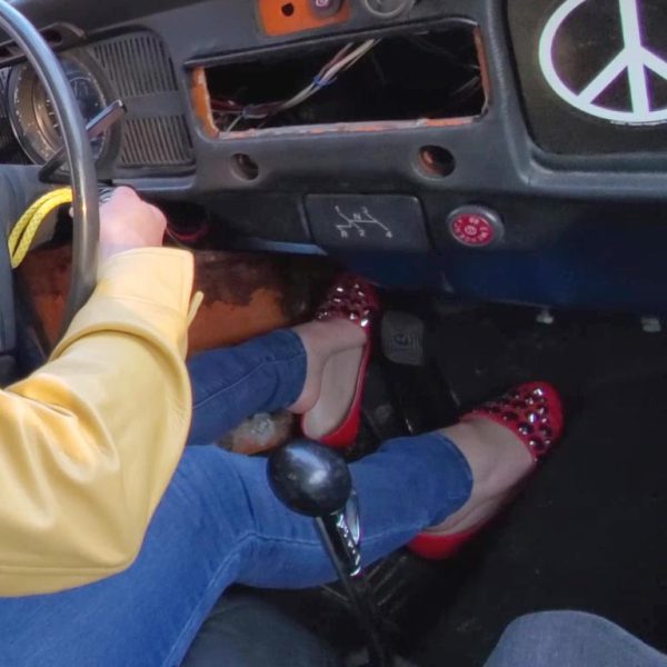 Taking the old Z out for a drive in a tshirt, shorts and pink strap flat sandals. She kicks the… Read more
