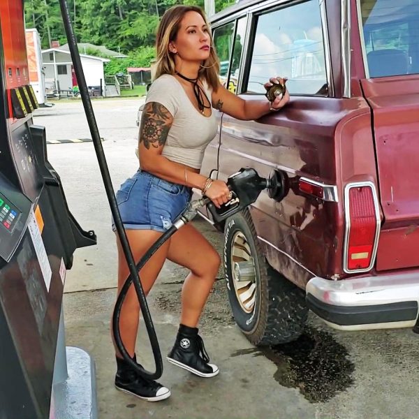 Taking the old full-size Jeep Grand Wagoneer to get some gas. Jane is wearing these black leather Converse sneakers with… Read more