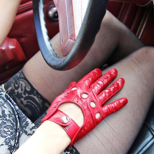 She's sitting behind the wheel of the Jeep and is 'gloving up' with her red leather driving gloves. She's wearing… Read more