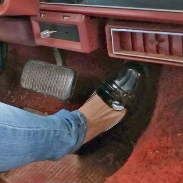 Jane Domino Shiny Black Loafers Cranking the Jeep & Kills the Battery