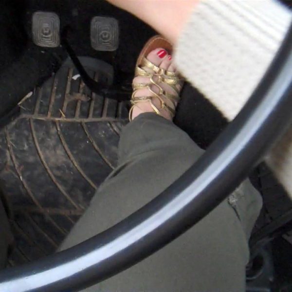 Jane Domino Struggles to Start & Move the Volvo w/Jewels in Yellow Platform Flip Flops