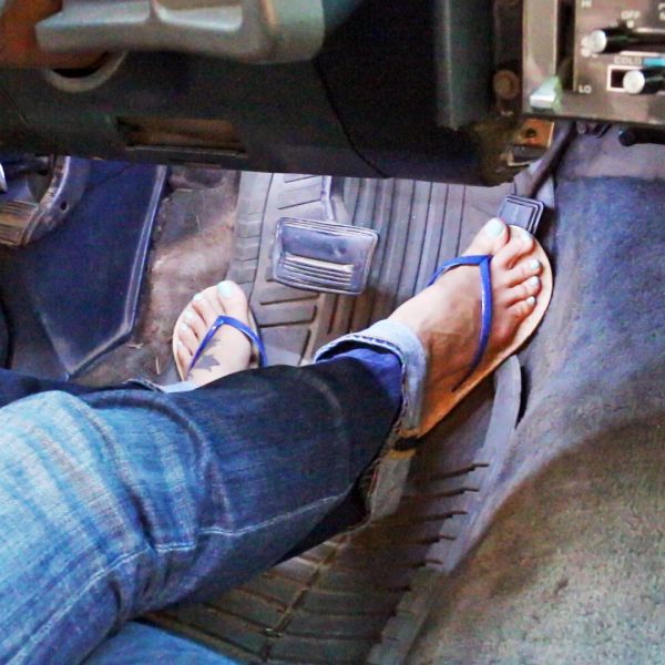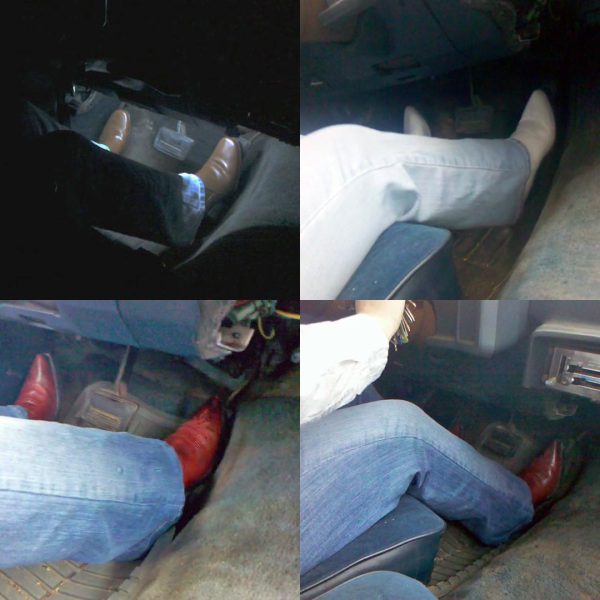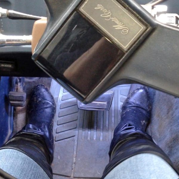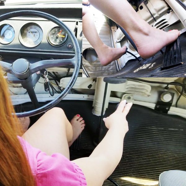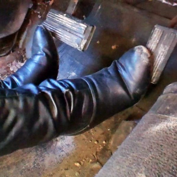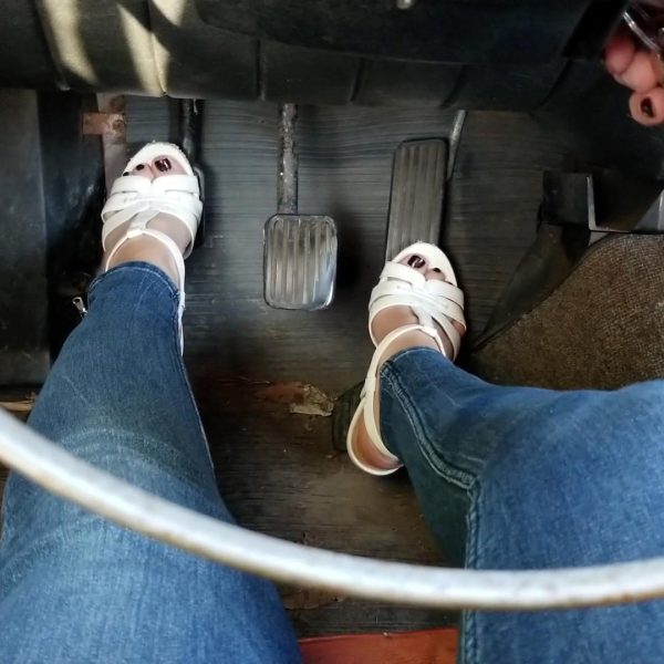 Her point-of-view trying to get the old Chevy started. Her black boots are dirty and covered in some mud. She… Read more