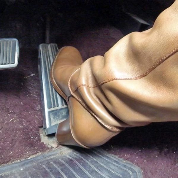 Cassandra Driving the Caddy to DMV in Tan OTK Boots, 2 of 2