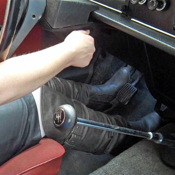Scarlet Cranking & Driving the Volvo in Gray OTK Boots