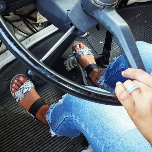 Samantha Ford Weak Driving the Chevy in Black Slingbacks