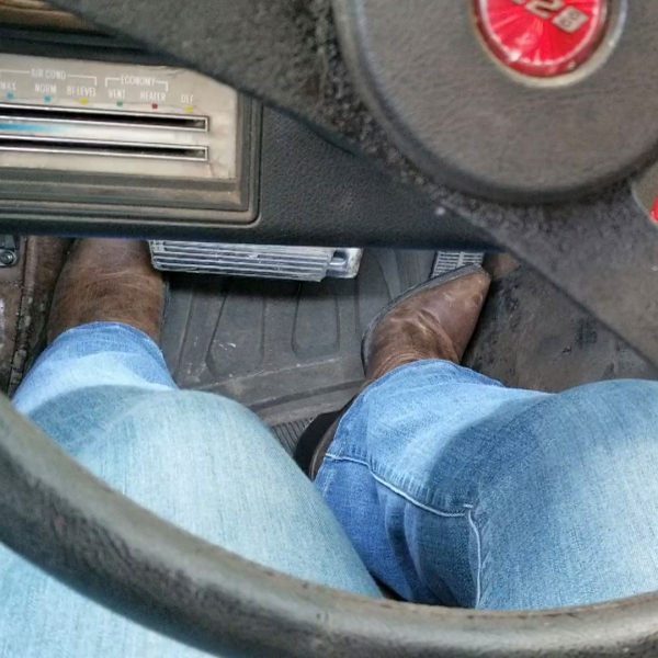 Heidi Revving Up the Smoky Caddy in Cowgirl Boots