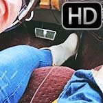Dirty Diana Cruising in the Volvo in Gold Thong Sandals