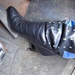 Tyler Grace Cranking the Jeep in Tall Socks & Cowgirl Boots