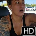 Jewels Reversing Her Acura in White Tank Top & Cutoffs